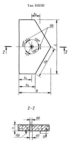 1ППШ 13  Поперечная половина шестиугольной плиты для постоянных дорог. ГОСТ 21924.0-84.