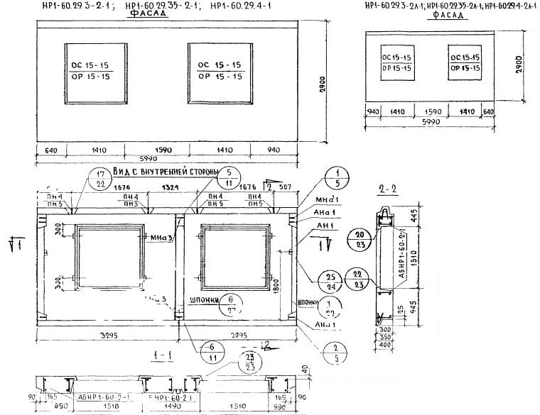 НР1-60.29.3-2л-1 Наружная стеновая панель рядовая по Серии 1.132-1.
